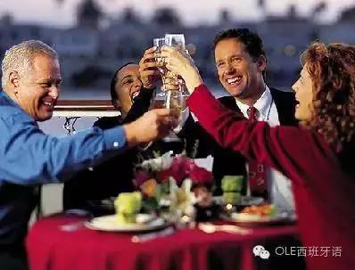 西班牙人在用餐期间有敬酒的习惯,特别是在正式的宴会上主客双方还要发表祝酒辞。在宴会上,主人或客人致祝酒辞时,其他人一定要肃静。西班牙人在餐桌上一般不劝酒,因此一定不要将国内劝酒的习惯带到国外。敬酒时,一般说“干杯”( 西班牙语 为“SALUD”),碰一下酒杯并象征性地喝一点。喝葡萄酒时,要慢慢喝,尽量不要一饮而尽。